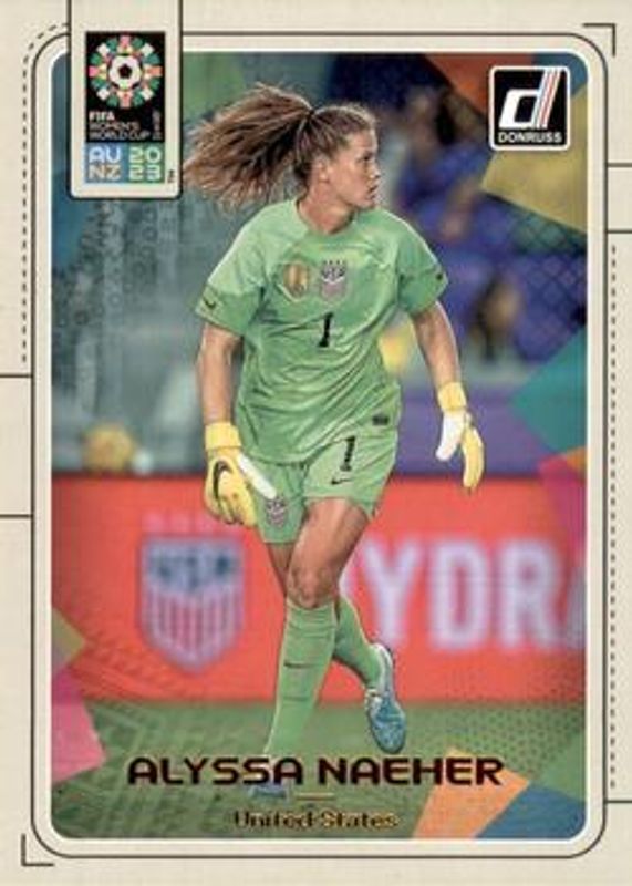 Alyssa Naeher's Soccer cards are available in at least 20 sets. Alyssa Naeher's biggest 7-day price movers are 2023 Donruss FIFA Women's World Cup #182 Base, 2023 Donruss FIFA Women's World Cup #182 Pink /23, and 2023 Donruss FIFA Women's World Cup #182 Red /299.