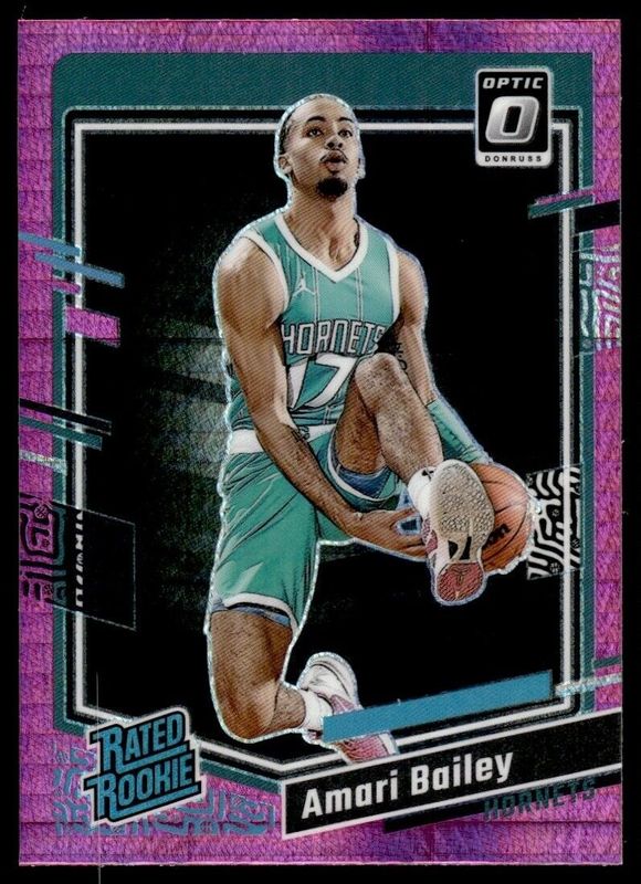 Amari Bailey's Basketball cards are available in at least 29 sets. Amari Bailey's biggest 7-day price movers are 2023 Optic #210 Hyper Pink, 2023 Optic #210 Red Velocity /299, and 2023 Optic #210 FOTL Purple Stars /17.