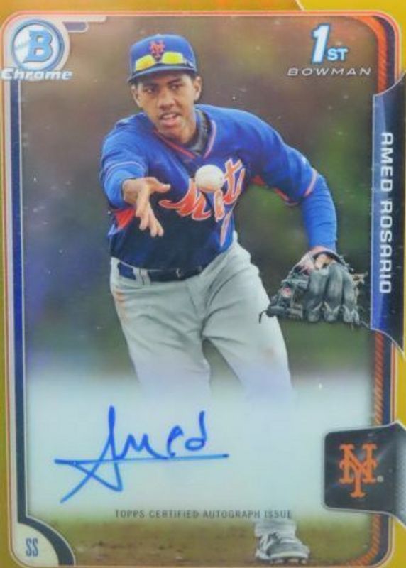 Amed Rosario's Baseball cards are available in at least 60 sets. Amed Rosario's biggest 7-day price movers are 2015 Bowman #BCAP-AMR Chrome Prospect Auto - Gold Refractor /50 (1st), 2023 Topps Archives #5 Orange Hot Foil /15, and 2023 Topps Archives #5 Base.