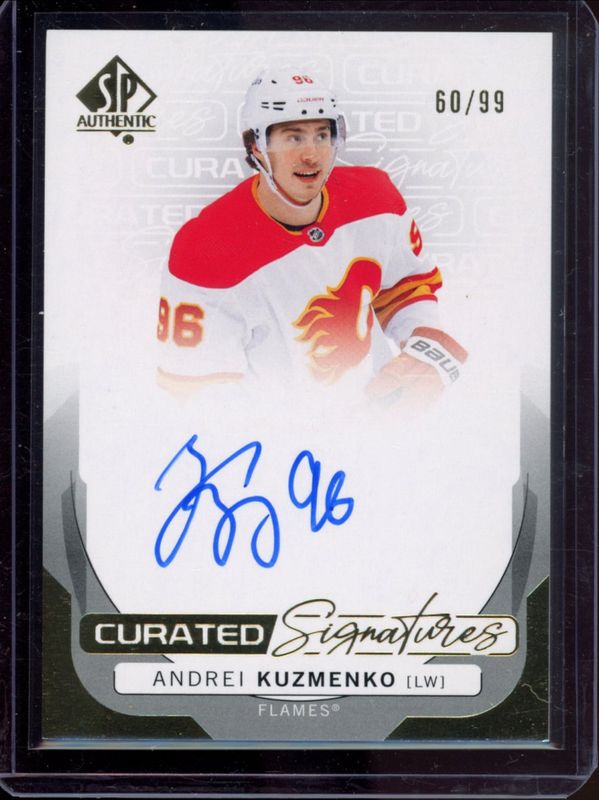 Andrei Kuzmenko's Hockey cards are available in at least 43 sets. Andrei Kuzmenko's biggest 7-day price movers are 2024 SP Authentic #SPC-AK Curated Signatures /299, 2024 SP Authentic #C-AK Chirography, and 2024 SP Authentic #SOTT1-AK 2023-24 Update 2003-04 Retro Sign of the Times.