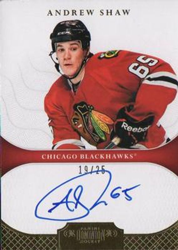 Andrew Shaw's Hockey cards are available in at least 63 sets. Andrew Shaw's biggest 7-day price movers are 2011 Dominion #112 Gold /25, 2011 Dominion #112 Black /1, and 2011 Dominion #112 Base /199.