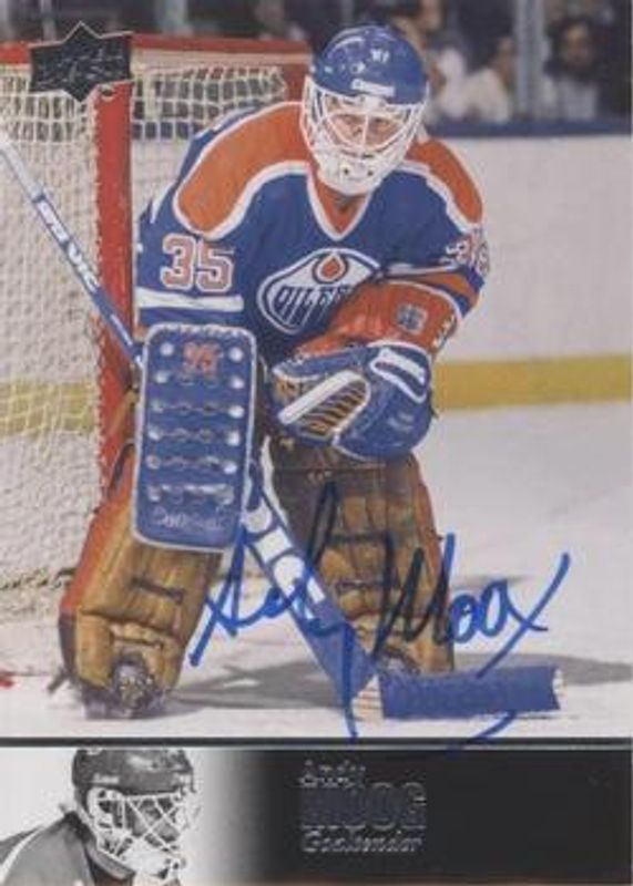 Andy Moog's Hockey cards are available in at least 110 sets. Andy Moog's biggest 7-day price movers are 2018 Upper Deck Ultimate Collection #AL-145 1997 Ultimate Legends Signatures, 2018 Upper Deck Team Canada Juniors #91 Midnight /50, and 2013 Upper Deck Black Diamond #ATG-26 All Time Greats Championship Rings.