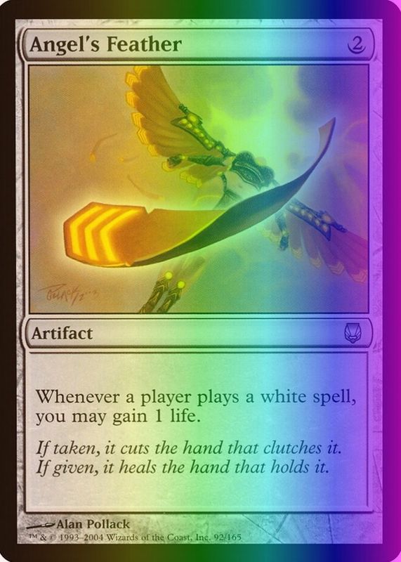 Angel's Feather's Magic: The Gathering cards are available in at least 1 sets. Angel's Feather's biggest 7-day price movers are 2004 Darksteel #92 Foil, and 2004 Darksteel #92 Base.
