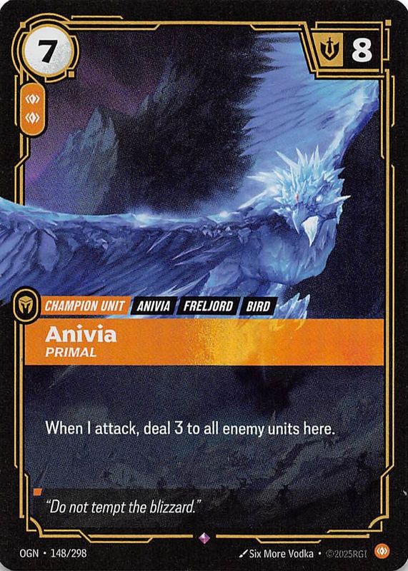 Anivia - Primal's Riftbound cards are available in at least 1 sets. Anivia - Primal's biggest 7-day price movers are 2025 Origins #148/298 Foil.