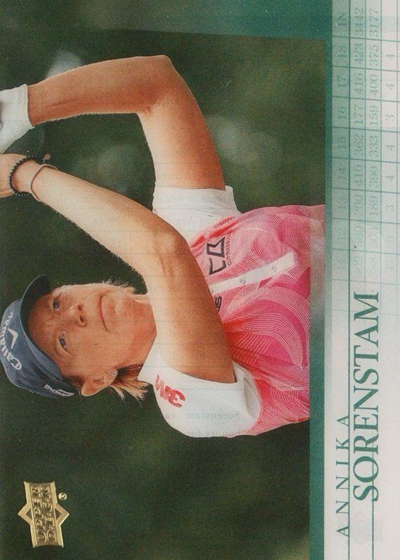 Annika Sorenstam's Golf cards are available in at least 5 sets. Annika Sorenstam's biggest 7-day price movers are 2024 Upper Deck #2001-AS 2001 Clear Cut Retro /(SSP), 2024 Upper Deck #BR-AS Brushstrokes /(SSP), and 2024 Upper Deck #CFL-10 Cleared for Launch /(SSP).