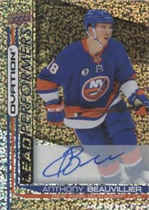 Anthony Beauvillier's Hockey cards are available in at least 33 sets. Anthony Beauvillier's biggest 7-day price movers are 2021 Upper Deck Ovation #LP-6 Lead Performers Autographs, 2021 Upper Deck Ovation #LP-6 Lead Performers, and 2021 Upper Deck Ovation #SOS-AB Standing Ovation Signatures.
