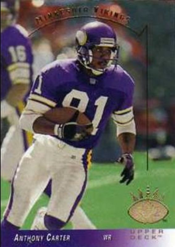Anthony Carter's Football cards are available in at least 17 sets. Anthony Carter's biggest 7-day price movers are 1993 SP #154 Base, 1989 Score #20 Base, and 1994 Pinnacle Select #153 Base.