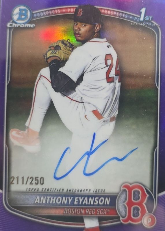 Anthony Eyanson's Baseball cards are available in at least 3 sets. Anthony Eyanson's biggest 7-day price movers are 2025 Bowman Draft Mega Box #BDC-116 Chrome (1st), 2025 Bowman Draft #BDC-116 Chrome - Refractor (1st), and 2025 Bowman Draft #BDC-116 Chrome - Lazer Refractor (1st).