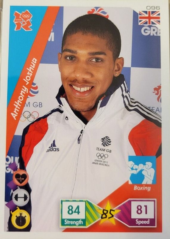 Anthony Joshua's Boxing cards are available in at least 1 sets. Anthony Joshua's biggest 7-day price movers are 2012 Panini Adrenalyn XL London Olympics #96 Base.