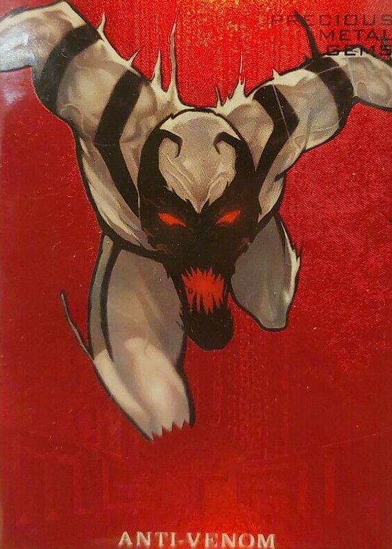 Anti-Venom's Marvel cards are available in at least 1 sets. Anti-Venom's biggest 7-day price movers are 2017 Fleer Ultra Spider-Man #MM30 Precious Metal Gems Red /99, 2017 Fleer Ultra Spider-Man #GC12 Royal Foil /99, and 2017 Fleer Ultra Spider-Man #MM30 Precious Metal Gems Bronze /199.
