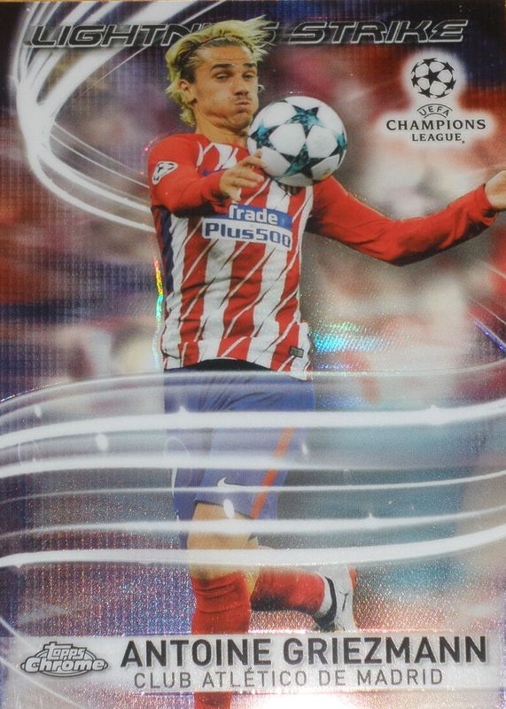 Antoine Griezmann's Soccer cards are available in at least 100 sets. Antoine Griezmann's biggest 7-day price movers are 2017 Topps Chrome UEFA Champions League #LS-AG Lightning Strike, 2017 Topps Chrome UEFA Champions League #LS-AG Lightning Strike - Gold Refractor /50, and 2017 Select #5 Kaboom! /(SSP).