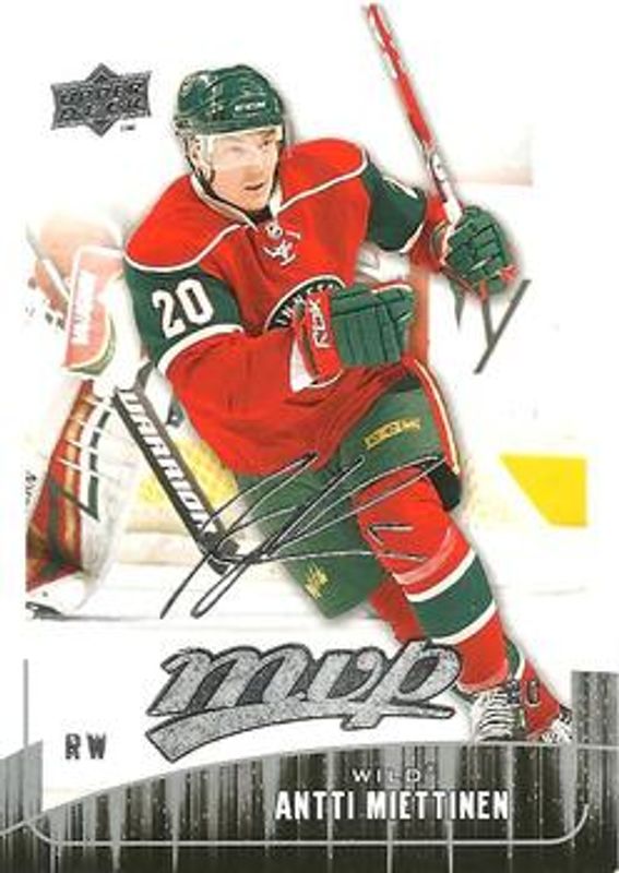 Antti Miettinen's Hockey cards are available in at least 30 sets. Antti Miettinen's biggest 7-day price movers are 2009 Upper Deck MVP #157 Base, 2009 Upper Deck MVP #157 Super Script /25, and 2009 Upper Deck MVP #157 Gold Script /100.