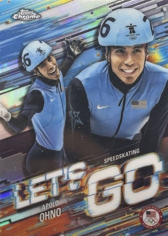 Apolo Ohno's Olympics cards are available in at least 1 sets. Apolo Ohno's biggest 7-day price movers are 2026 Topps Chrome US Olympic & Paralympic Team Hopefuls #LG-7 Let's Go /(SSP), 2026 Topps Chrome US Olympic & Paralympic Team Hopefuls #LG-7 Let's Go - Superfractor /1, and 2026 Topps Chrome US Olympic & Paralympic Team Hopefuls #HX-7 Helix /(SSP).