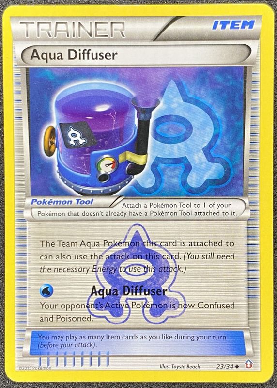 Aqua Diffuser's Pokemon cards are available in at least 1 sets. Aqua Diffuser's biggest 7-day price movers are 2015 XY: Double Crisis #23/34 Base, and 2015 XY: Double Crisis #23/34 Reverse Holo.