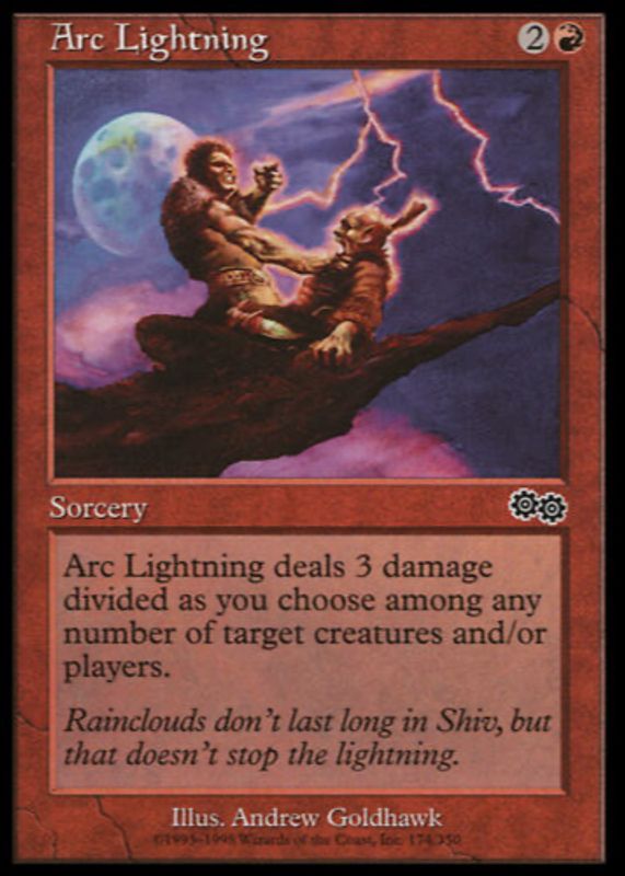 Arc Lightning's Magic: The Gathering cards are available in at least 1 sets. Arc Lightning's biggest 7-day price movers are 1998 Urza's Saga #174 Base.