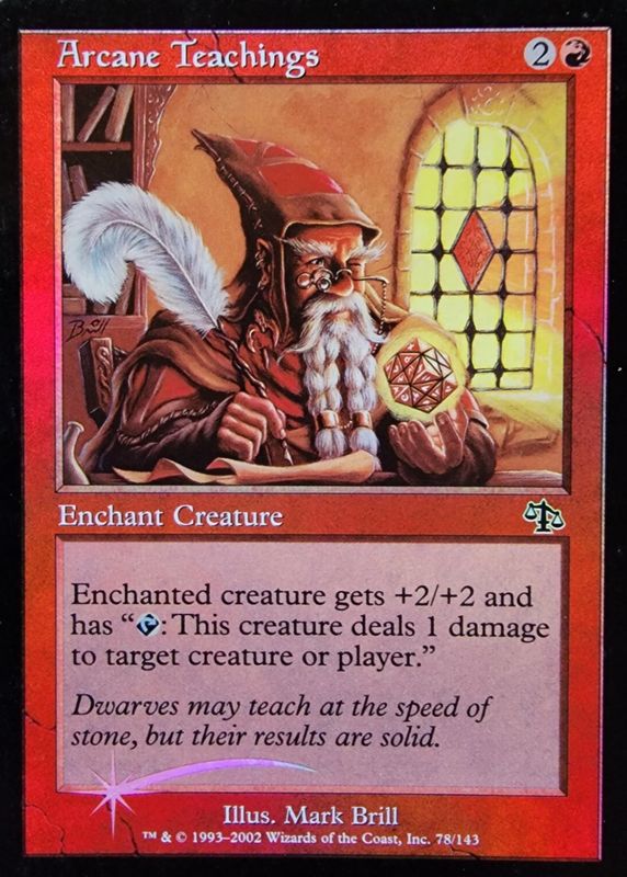 Arcane Teachings' Magic: The Gathering cards are available in at least 1 sets. Arcane Teachings' biggest 7-day price movers are 2002 Judgment #78 Foil, and 2002 Judgment #78 Base.
