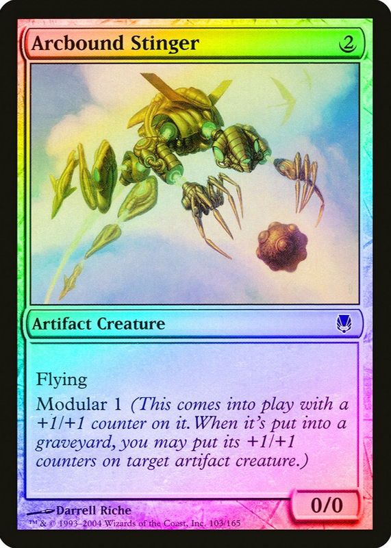 Arcbound Stinger's Magic: The Gathering cards are available in at least 1 sets. Arcbound Stinger's biggest 7-day price movers are 2004 Darksteel #103 Foil, and 2004 Darksteel #103 Base.
