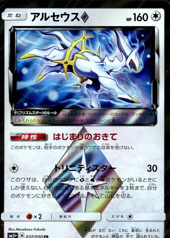 Arceus Prism Star's Pokemon cards are available in at least 2 sets. Arceus Prism Star's biggest 7-day price movers are 2018 Japanese Sun & Moon: Ultra Force #037/050 Holo, and 2018 Sun & Moon: Forbidden Light #096/131 Holo.