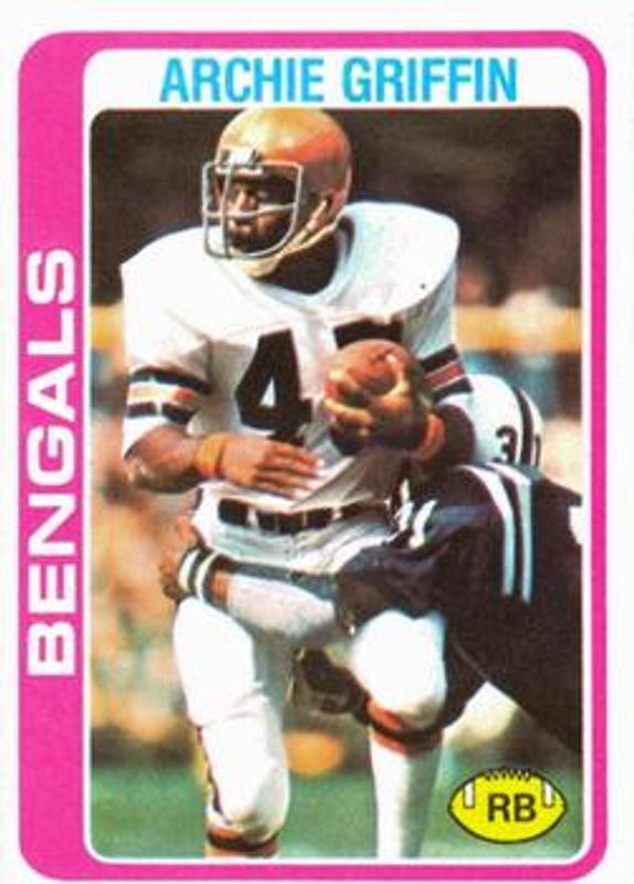 Archie Griffin's Football cards are available in at least 10 sets. Archie Griffin's biggest 7-day price movers are 1978 Topps #55 Base, 2005 Topps All American #42 Chrome - Refractor /55, and 2005 Topps All American #A-AG Autographs - Chrome Refractor /55.