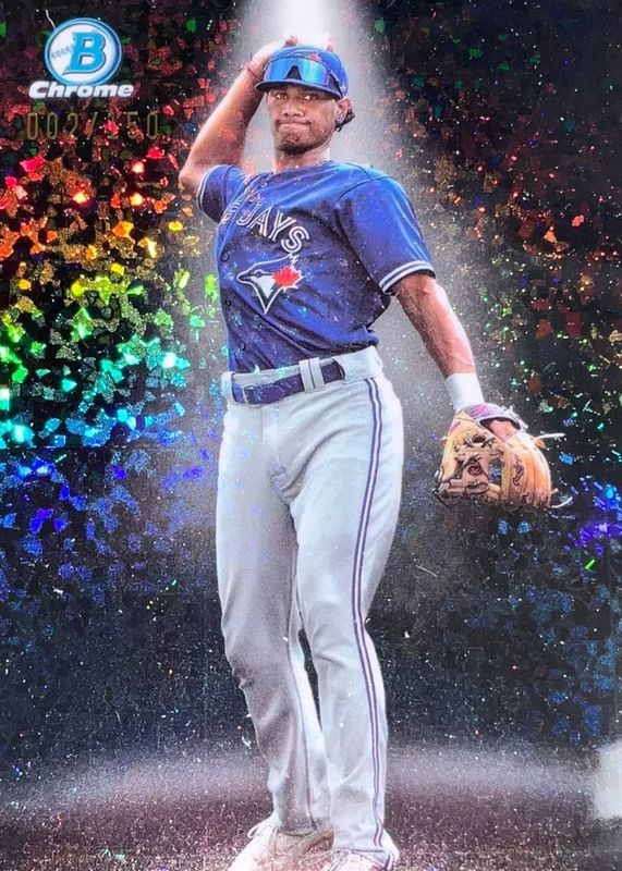 The biggest 30-day change Arjun Nimmala cards are 2024 Bowman #BP-142 Paper Prospects - Purple Border /250 (1st), 2024 Bowman #BCP-142 Chrome Prospects - Fuchsia Refractor /199 (1st), and 2024 Bowman Mega Box #BCP-142 Chrome Prospects - Pink Refractor /199 (1st).