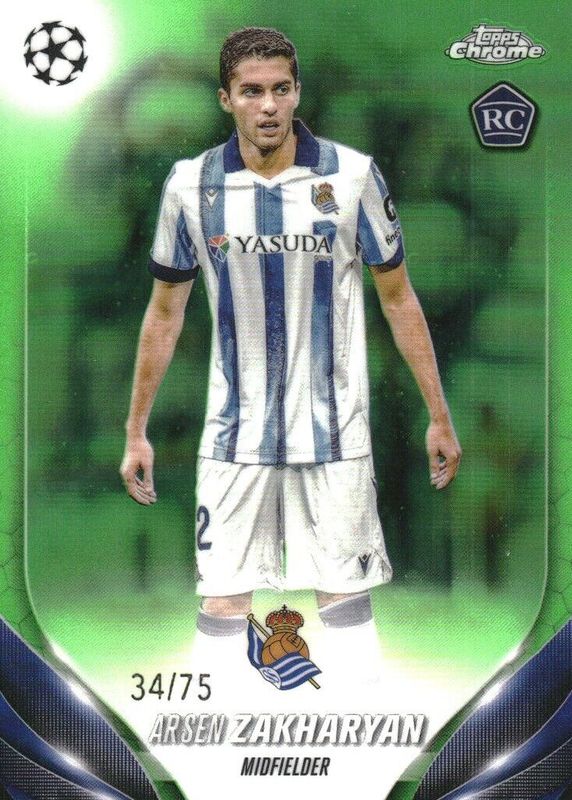 Arsen Zakharyan's Soccer cards are available in at least 5 sets. Arsen Zakharyan's biggest 7-day price movers are 2023 Topps Chrome UEFA Club Competitions #141 Green Refractor /75, 2023 Topps Chrome UEFA Club Competitions #141 Gold Refractor /50, and 2023 Topps Chrome UEFA Club Competitions #141 Blue Geometric Refractor /150.