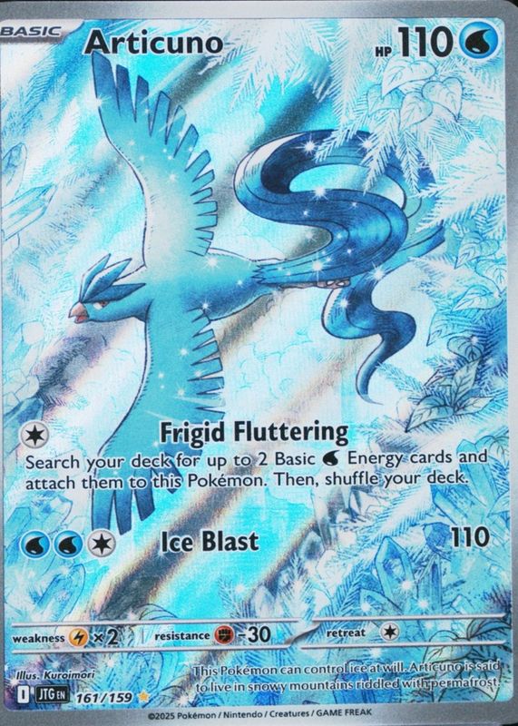 Articuno's Pokemon cards are available in at least 28 sets. Articuno's biggest 7-day price movers are 2025 Scarlet & Violet: Journey Together #032/159 Base, 2025 Japanese Scarlet & Violet: Battle Partners #102/100 Art Rare, and 2023 Scarlet & Violet: 151 #144/165 Reverse Holo.