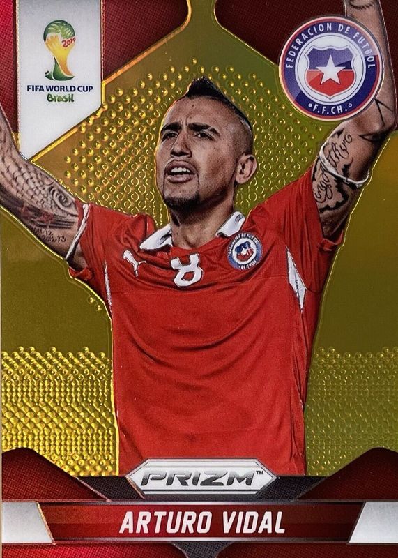 Arturo Vidal's Soccer cards are available in at least 37 sets. Arturo Vidal's biggest 7-day price movers are 2014 Prizm World Cup #43 Gold /10, 2022 Select La Liga #PS-AV Pitchside Signatures Peacock, and 2022 Select La Liga #PS-AV Pitchside Signatures.