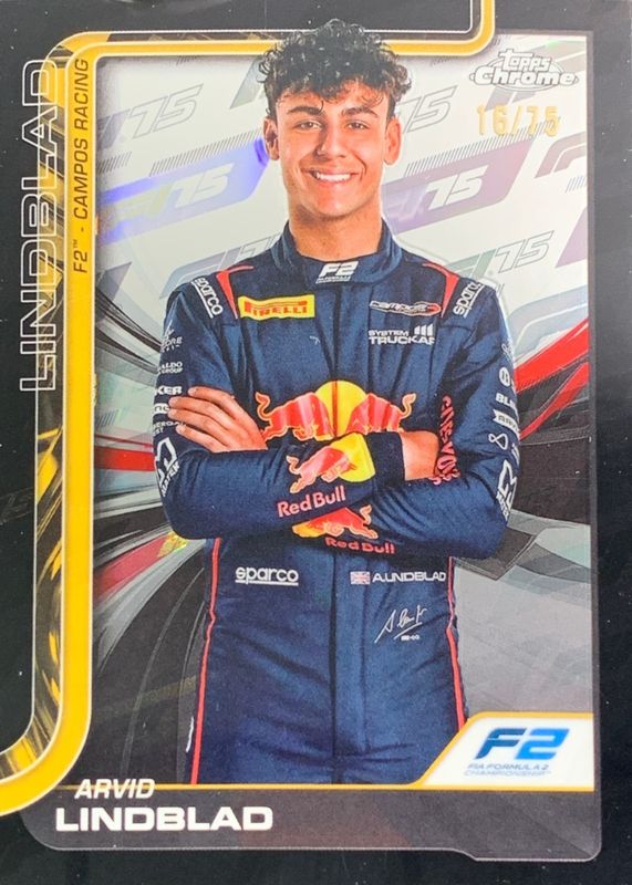 Arvid Lindblad's Racing cards are available in at least 2 sets. Arvid Lindblad's biggest 7-day price movers are 2025 Topps Chrome Formula 1 #23 75th Anniversary Refractor /75, 2025 Topps Chrome Formula 1 #CAC-LIN Chrome Autographs - Green Refractor /99, and 2025 Topps Chrome Formula 1 #CAC-LIN Chrome Autographs.