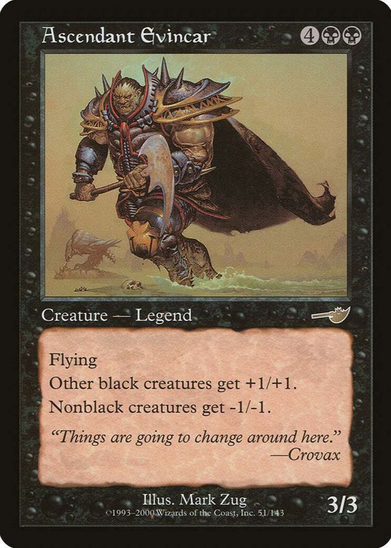 Ascendant Evincar's Magic: The Gathering cards are available in at least 1 sets. Ascendant Evincar's biggest 7-day price movers are 2000 Nemesis #51 Base, and 2000 Nemesis #51 Foil.