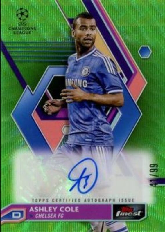 Ashley Cole's Soccer cards are available in at least 20 sets. Ashley Cole's biggest 7-day price movers are 2022 Topps Finest UEFA Club Competitions #A-AC Autographs - Neon Green Refractor /99, 2022 Topps Finest UEFA Club Competitions #A-AC Autographs - Red Wave Refractor /5, and 2022 Topps Finest UEFA Club Competitions #A-AC Autographs - Superfractor /1.