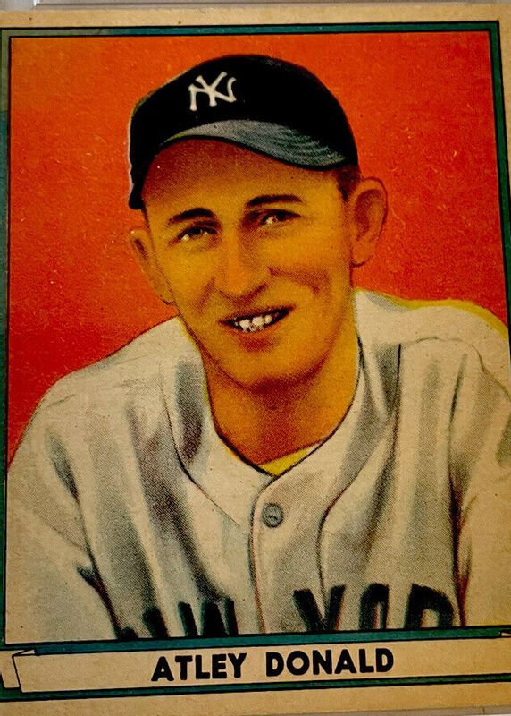 Atley Donald's Baseball cards are available in at least 2 sets. Atley Donald's biggest 7-day price movers are 1941 Play Ball #38 Base, 1940 Play Ball #121b Base, and 1940 Play Ball #121a Base.