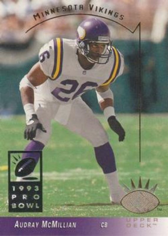 Audray McMillian's Football cards are available in at least 5 sets. Audray McMillian's biggest 7-day price movers are 1993 SP #161 Base, 1994 Topps Finest #203 Base, and 1994 Topps Finest #203 Refractors.