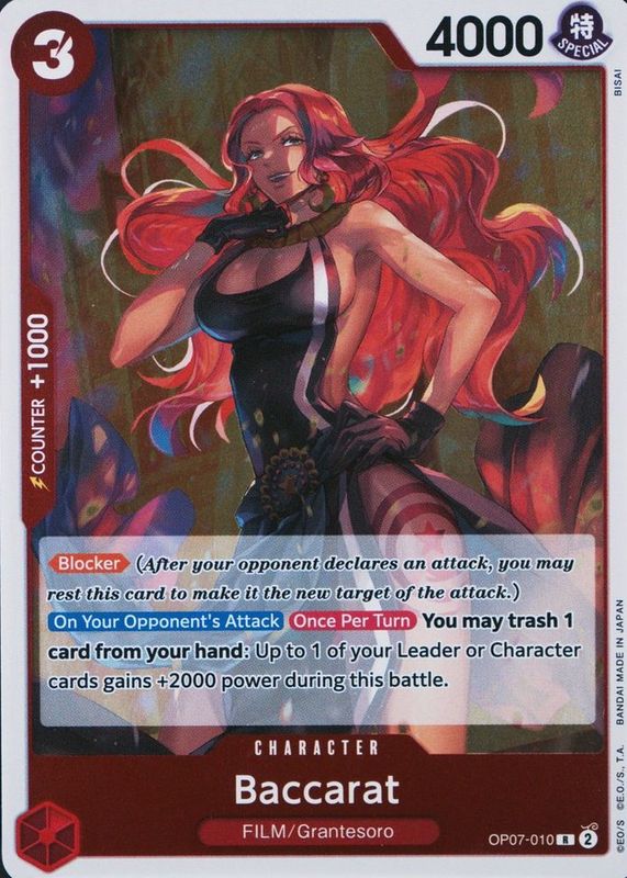 Baccarat's One Piece cards are available in at least 1 sets. Baccarat's biggest 7-day price movers are 2024 500 Years in the Future #OP07-010 Foil.