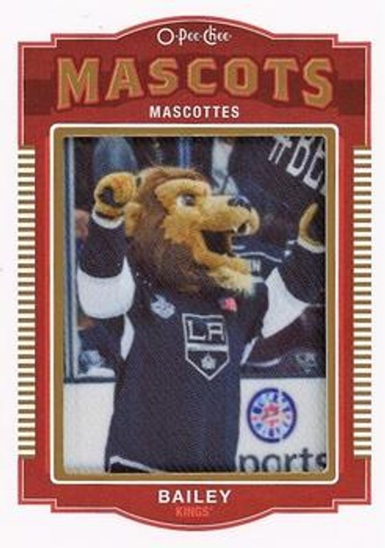 Bailey's Hockey cards are available in at least 10 sets. Bailey's biggest 7-day price movers are 2015 O-Pee-Chee #P-96 Manufactured Patches, 2022 SP Game Used #DB-14 2022 NHL All Star Game Mascot Dodgeball Relics /25, and 2022 SP Game Used #MM-LAK Mascot Marks /35.