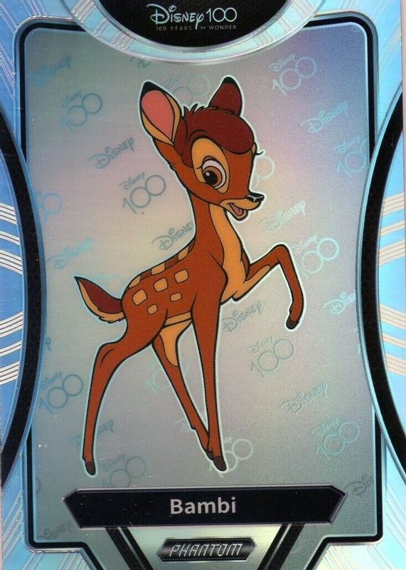 The biggest 30-day change Bambi cards are 2023 Kakawow Phantom Disney 100 Years of Wonder #PD-I 83 Silver /(Est. Print Run 1,200), 2025 Topps Chrome Disney #DI-4 Disney Icons - SuperFractor /1, and 2025 Topps Chrome Disney #7 Black Wave Refractor /10.
