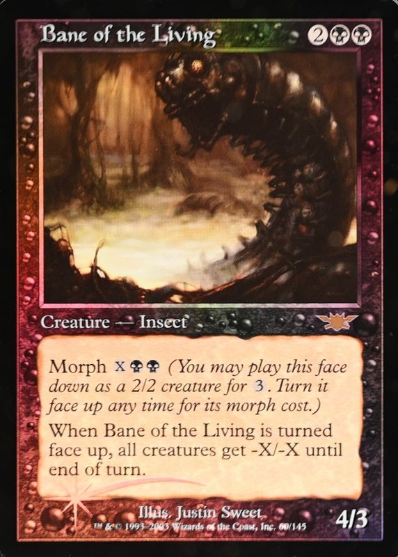Bane of the Living's Magic: The Gathering cards are available in at least 1 sets. Bane of the Living's biggest 7-day price movers are 2003 Legions #60 Foil, and 2003 Legions #60 Base.