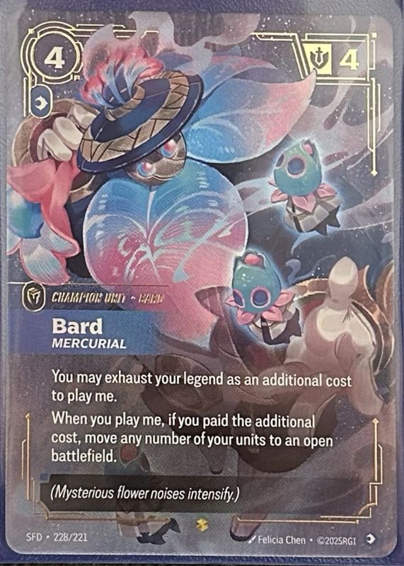 Bard - Mercurial's Riftbound cards are available in at least 1 sets. Bard - Mercurial's biggest 7-day price movers are 2026 Spiritforged #228/221 Overnumber Showcase, 2026 Spiritforged #228*/221 Signature Showcase, and 2026 Spiritforged #079/221 Foil.