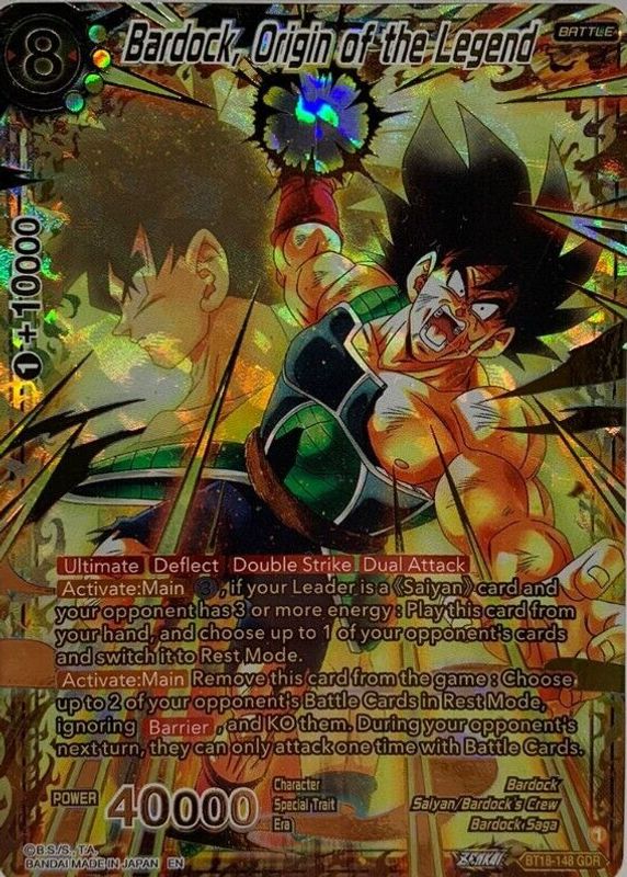 Bardock, Origin of the Legend's Dragon Ball Super cards are available in at least 1 sets. Bardock, Origin of the Legend's biggest 7-day price movers are 2022 Dawn of the Z-Legends #BT18-148 God Rare.