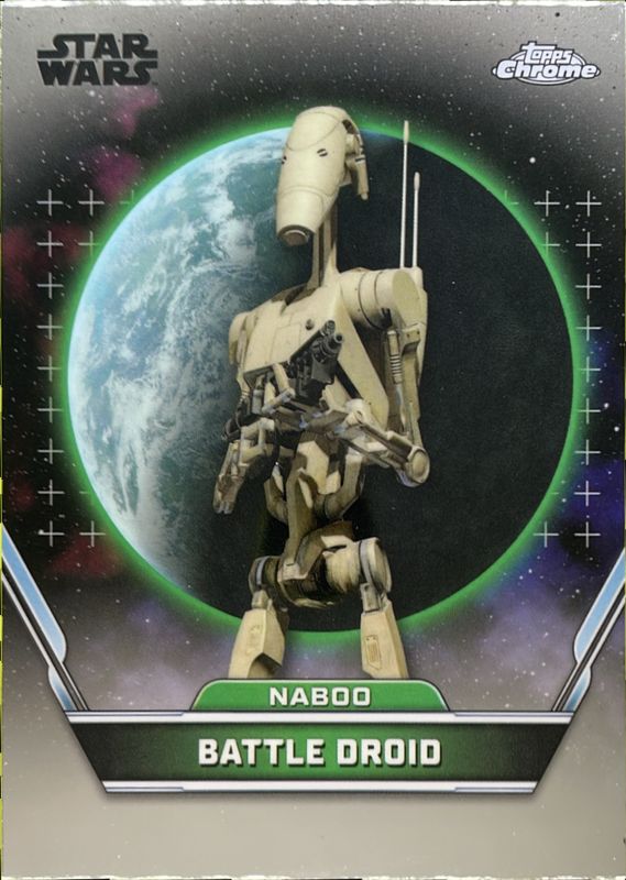 Battle Droid's Star Wars cards are available in at least 6 sets. Battle Droid's biggest 7-day price movers are 2024 Topps Star Wars Hyperspace #55 Base, 2024 Topps Star Wars Hyperspace #55 Hyperlanes Refractor /25, and 2024 Topps Star Wars Hyperspace #55 Aqua Sonar Refractor /199.