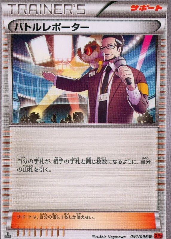 Battle Reporter's Pokemon cards are available in at least 2 sets. Battle Reporter's biggest 7-day price movers are 2014 Japanese XY: Rising Fist #091/096 1st Edition, 2014 Japanese XY: Rising Fist #103/096 1st Edition Holo (Full Art), and 2014 XY: Furious Fists #088/111 Base.