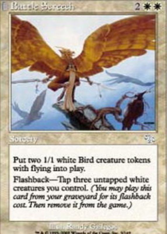 Battle Screech's Magic: The Gathering cards are available in at least 1 sets. Battle Screech's biggest 7-day price movers are 2002 Judgment #3 Foil, and 2002 Judgment #3 Base.