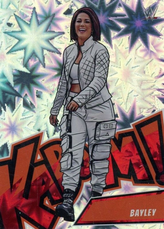 Bayley's Wrestling cards are available in at least 28 sets. Bayley's biggest 7-day price movers are 2023 Revolution WWE #24 Kaboom! /(SSP), 2024 Prizm WWE #94 Green Pulsar /25, and 2024 Prizm WWE #94 Gold Shimmer /5.