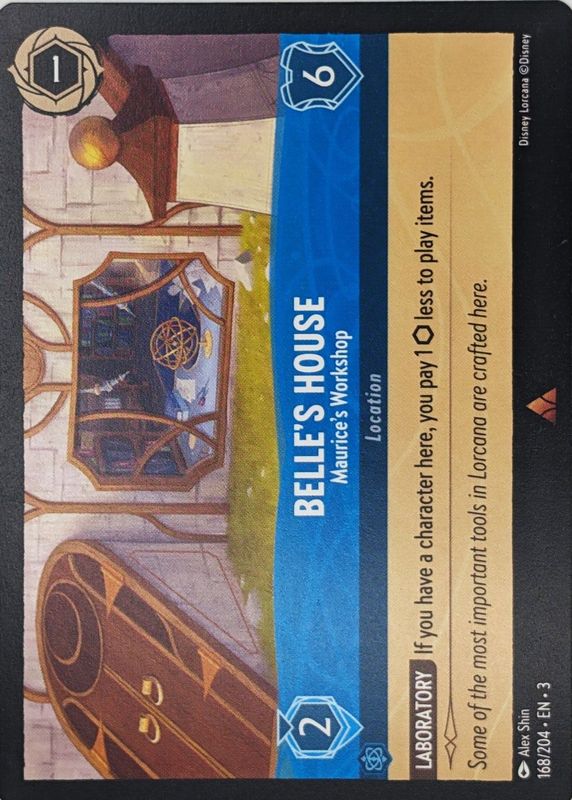 Belle's House - Maurice's Workshop's Disney Lorcana cards are available in at least 1 sets. Belle's House - Maurice's Workshop's biggest 7-day price movers are 2024 Into the Inklands #168/204 Base, 2024 Into the Inklands #168/204 Cold Foil, and 2024 Into the Inklands #219/204 Enchanted (Alternate Art).