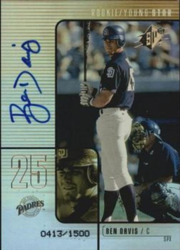 Ben Davis' Baseball cards are available in at least 15 sets. Ben Davis' biggest 7-day price movers are 2000 SPx #110 Base /1500, 2000 SPx #110 Radiance /100, and 2000 SPx #110 Spectrum /1.