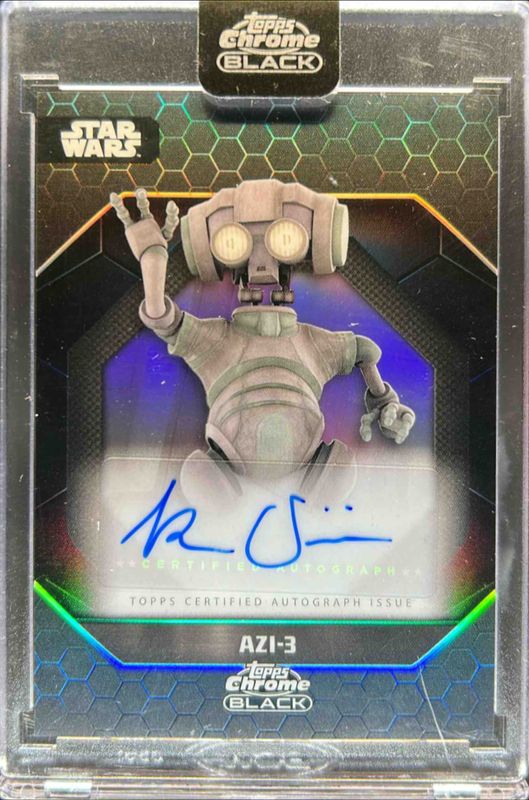 Ben Diskin's Star Wars cards are available in at least 3 sets. Ben Diskin's biggest 7-day price movers are 2024 Topps Chrome Black Star Wars #ALS-DI Light Side Autographs, 2024 Topps Chrome Black Star Wars #ALS-DI Light Side Autographs - Blue Red Lava Refractor /99, and 2024 Topps Chrome Black Star Wars #ALS-DI Light Side Autographs - Magenta Printing Plate /1.