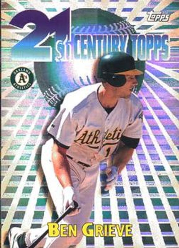 Ben Grieve's Baseball cards are available in at least 43 sets. Ben Grieve's biggest 7-day price movers are 2000 Topps #C1 21st Century, 2000 Topps #95 Home Team Advantage, and 2000 Topps MVP Promotion.
