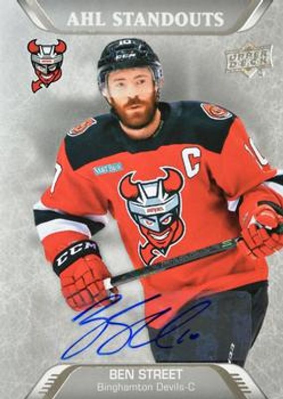 The biggest 30-day change Ben Street cards are 2020 Upper Deck AHL #221 Autographs, 2020 Upper Deck AHL #221 Gold /25, and 2020 Upper Deck AHL #28 UD High Gloss /10.