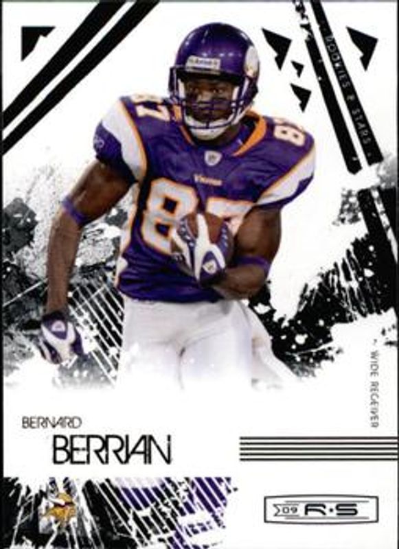 Bernard Berrian's Football cards are available in at least 63 sets. Bernard Berrian's biggest 7-day price movers are 2009 Donruss Rookies & Stars #56 Base /141, 2009 Donruss Rookies & Stars #56 Gold Retail, and 2009 Donruss Rookies & Stars #56 Longevity Platinum /25.