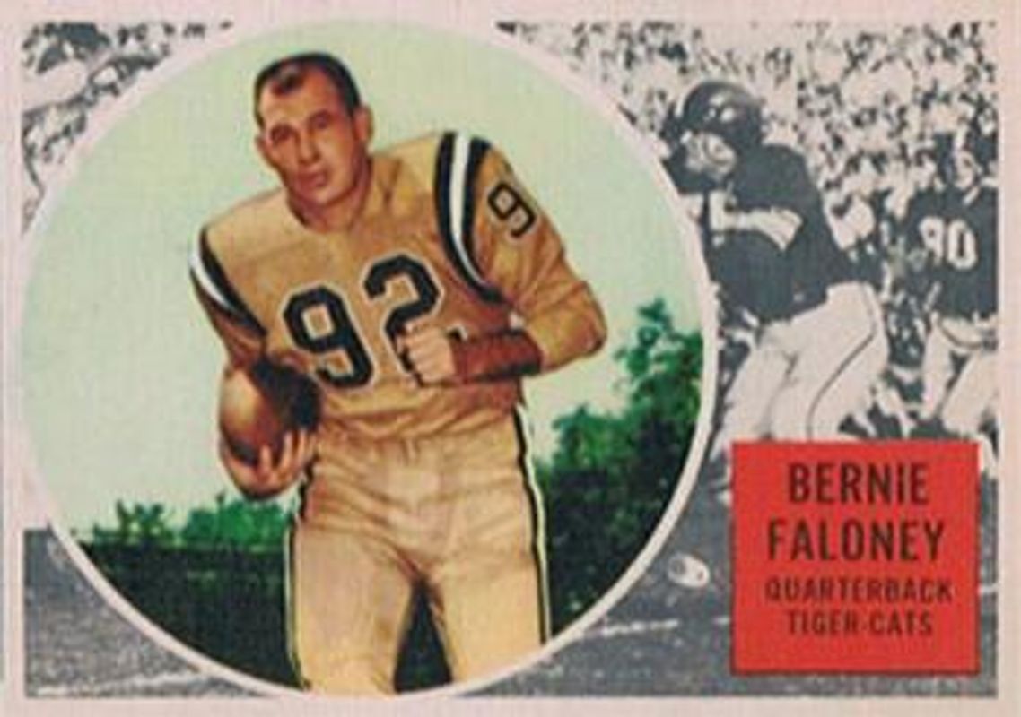 Bernie Faloney's Football cards are available in at least 6 sets. Bernie Faloney's biggest 7-day price movers are 1960 Topps CFL #33 Base, 1961 Topps CFL #47 Base, and 1962 Topps CFL #63 Base.