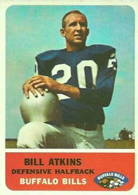 Bill Atkins' Football cards are available in at least 3 sets. Bill Atkins' biggest 7-day price movers are 1962 Fleer #18 Base, 1960 Fleer #24 Base, and 1961 Fleer #141 Base.